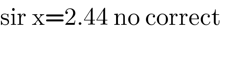 $$\mathrm{sir}\:\mathrm{x}=\mathrm{2}.\mathrm{44}\:\mathrm{no}\:\mathrm{correct} \\ $$ | ||